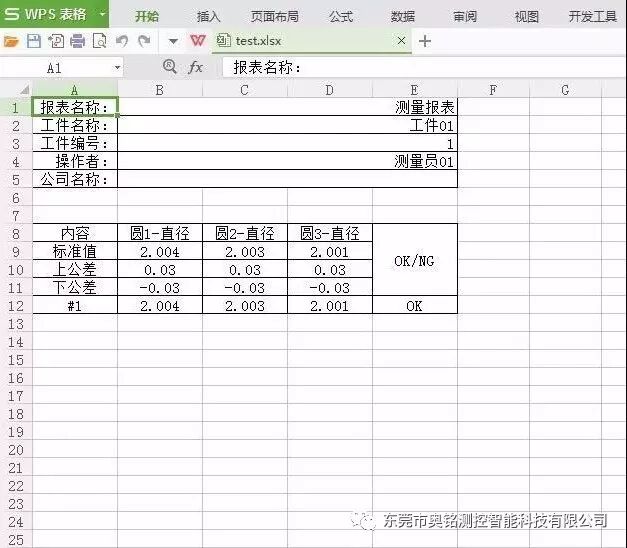 名称、标准值、上公差、下公差填入对应的行数数字就好。其中我们要注意“时间行/列位置”、“工件名称”这两个,时间再横向报表里我们要让他显示在F列对应的数字填6,工件名称要让它显示在A列对应的数字填1,所有的都只能填阿拉伯数字。还有就是自动换行功能,比如我们想要每隔3行中间空一行再输入数据的话就在“自动换行”那里填3就行,最终输出显示看下图: